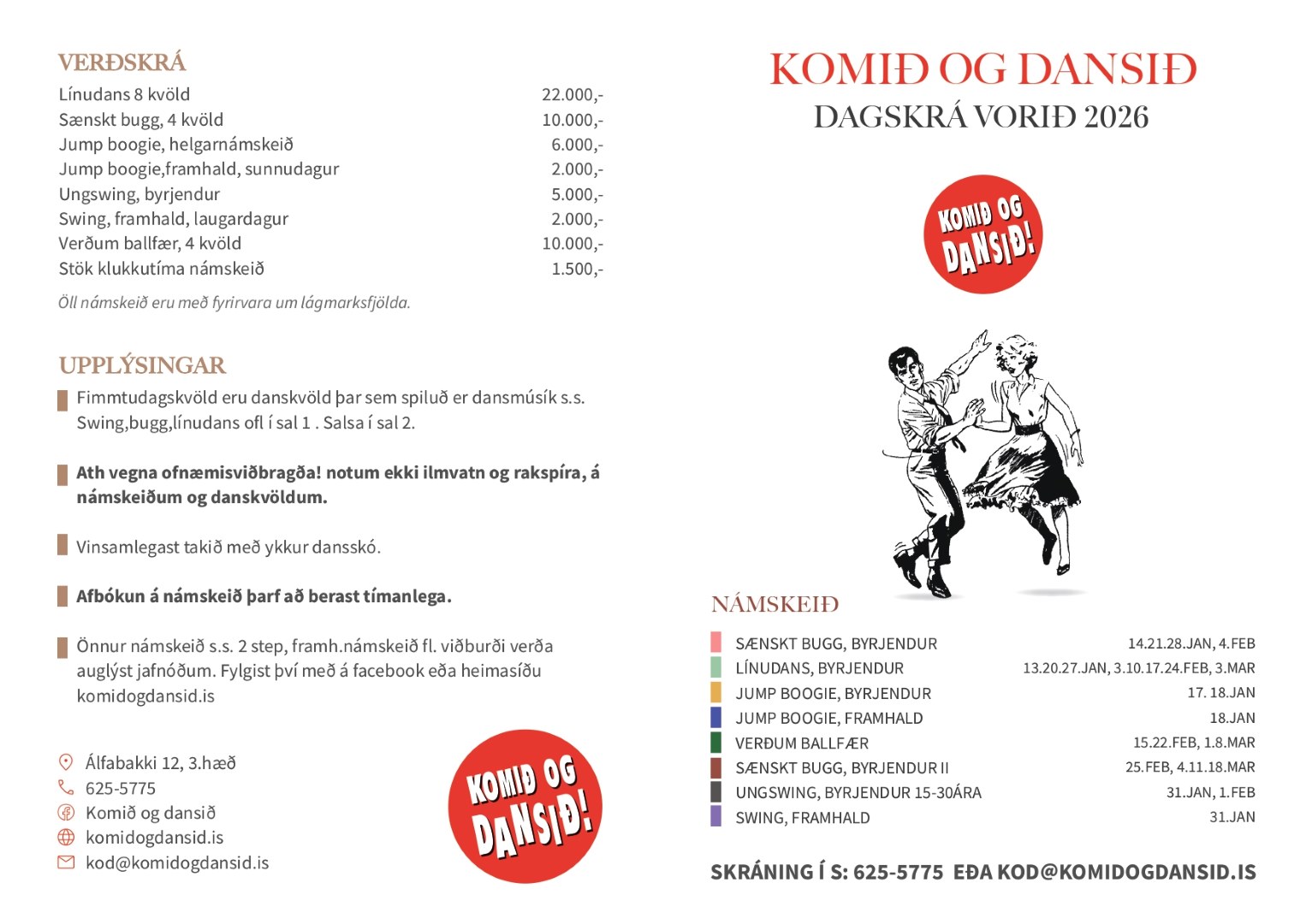 Hér er hægt að skoða prentaða dagskrá fyrir vorið 2026.